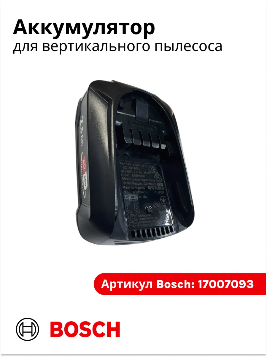 Аккумулятор для пылесоса Bosch — это высокоэффективный источник энергии, обеспечивающий долгую и надежную работу вашего устройства. Специально разработанный для использования с вертикальными пылесосами Bosch, этот аккумулятор сочетает в себе мощность, долговечность и удобство, позволяя вам наслаждаться беспроводной уборкой без лишних ограничений.