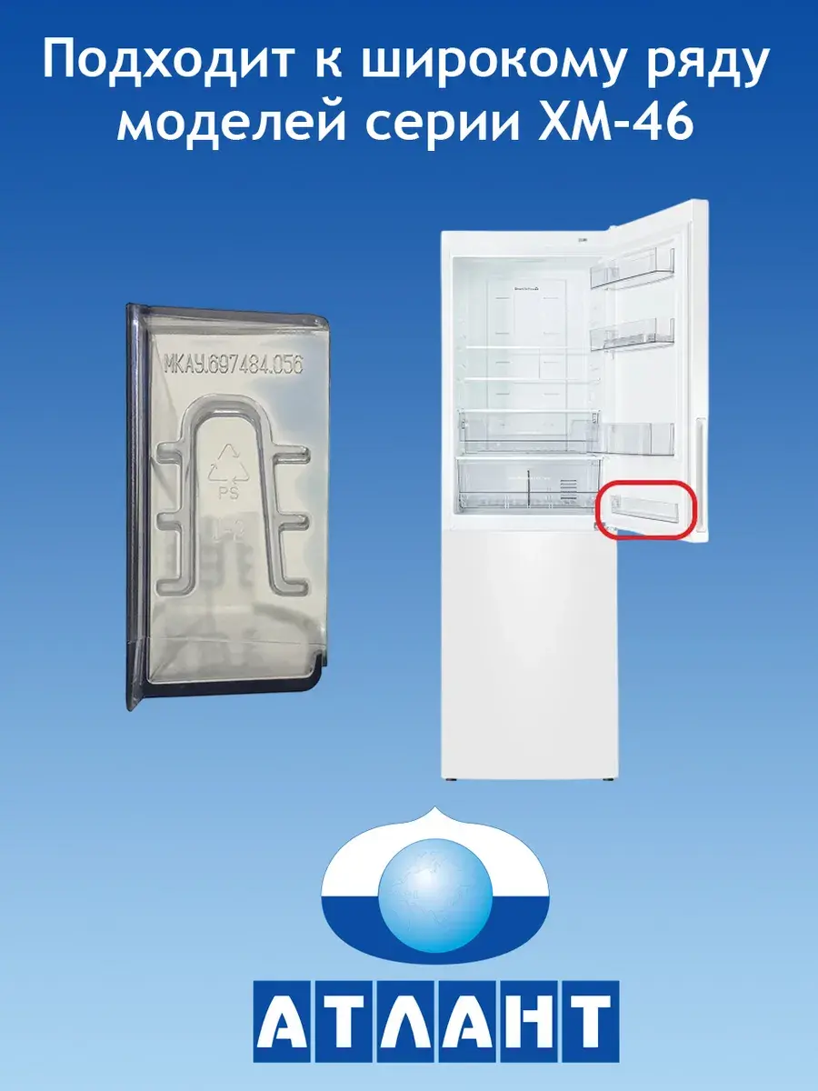 Оригинальная нижняя навесная узкая полка-балкон для двери холодильника Атлант. Предназначена для хранения бутылок, банок и мелких упаковок в нижней части дверцы: надёжно фиксирует предметы, экономит место и возвращает аккуратный внешний вид внутренней обстановки холодильника.