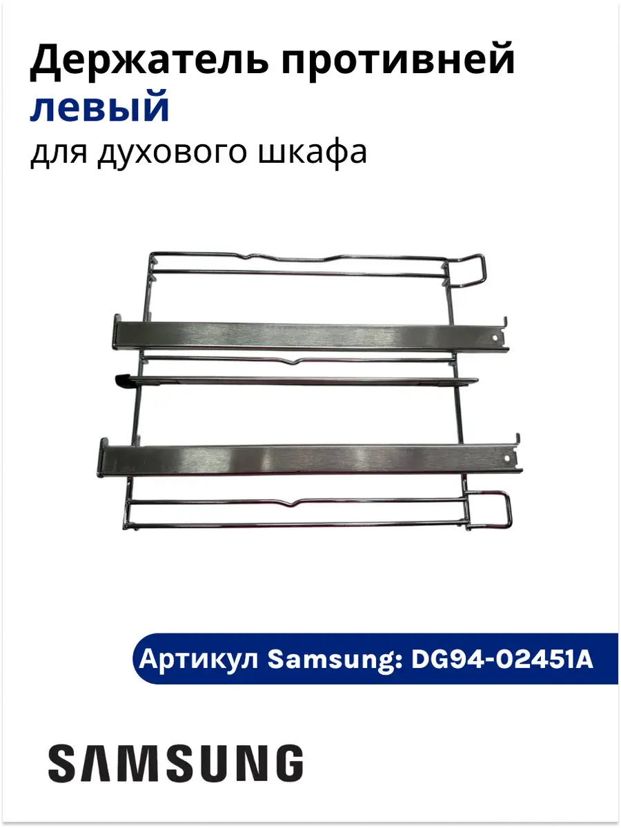 Левый держатель противней для духового шкафа Samsung — это надежный и функциональный элемент, предназначенный для удобного размещения противней и других кухонных принадлежностей внутри духового шкафа. Изготовленный из высококачественных материалов, он обеспечивает долговечность и устойчивость к высоким температурам.