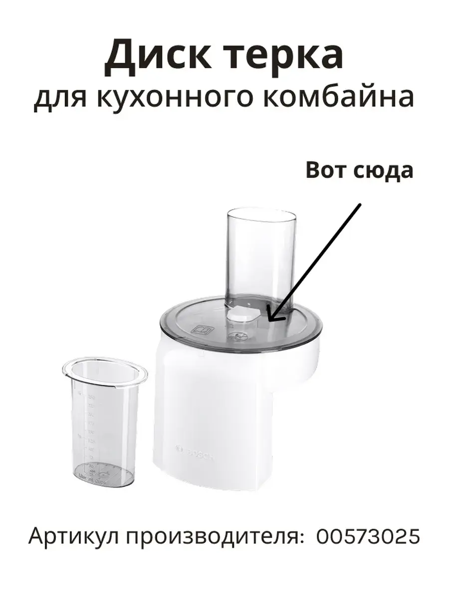 Диск терка для кухонного комбайна BOSCH 00573025. Подходит к моделям: MUM54270DE/02 MUM54270DE/04 MUM54270DE/06 MUM5LOVE/06 MUZ45AG1(00) MUZ5VL1(00)