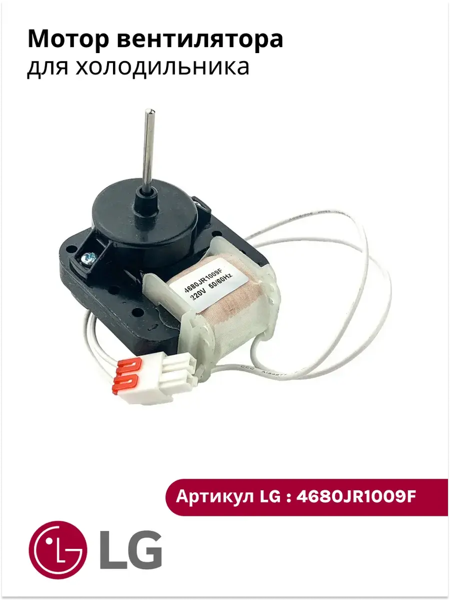 Оригинальный мотор вентилятора для холодильников LG. Обеспечивает циркуляцию воздуха внутри холодильника для поддержания равномерной температуры.