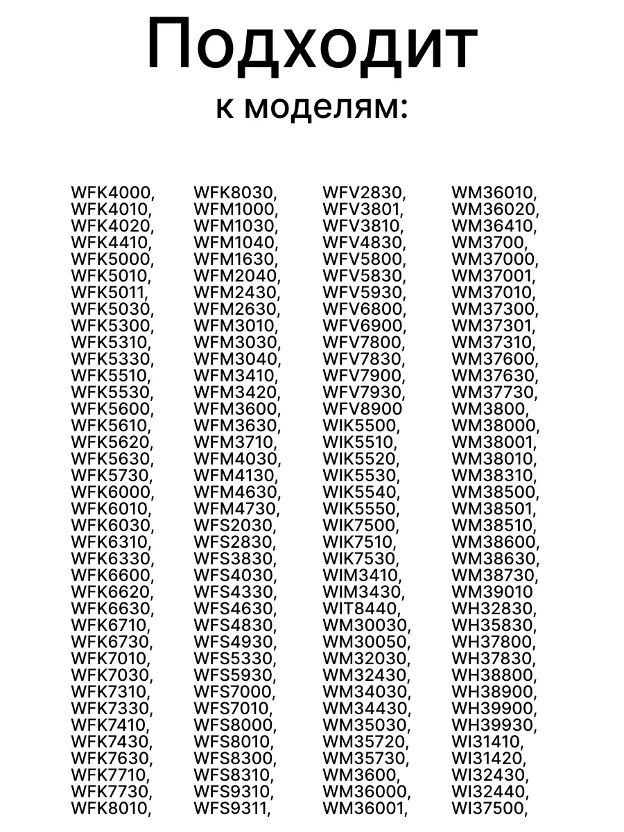 WFK4000, WFK4010, WFK4020, WFK4410, WFK5000, WFK5010, WFK5011, WFK5030,WFK5300, WFK5310, WFK5330, WFK5510, WFK5530, WFK5600, WFK5610, WFK5620,WFK5630, WFK5730, WFK6000, WFK6010, WFK6030, WFK6310, WFK6330, WFK6600,WFK6620, WFK6630, WFK6710, WFK6730, WFK7010, WFK7030, WFK7310, WFK7330,WFK7410, WFK7430, WFK7630, WFK7710, WFK7730, WFK8010, WFK8030,WFM1000, WFM1030, WFM1040, WFM1630, WFM2040, WFM2430, WFM2630, WFM3010,WFM3030, WFM3040, WFM3410, WFM3420, WFM3600, WFM3630, WFM3710, WFM4030,WFM4130, WFM4630, WFM4730,WFS2030, WFS2830, WFS3830, WFS4030, WFS4330, WFS4630, WFS4830, WFS4930,WFS5330, WFS5930, WFS7000, WFS7010, WFS8000, WFS8010, WFS8300, WFS8310,WFS9310, WFS9311,WFV2830, WFV3801, WFV3810, WFV4830, WFV5800, WFV5830, WFV5930, WFV6800,WFV6900, WFV7800, WFV7830, WFV7900, WFV7930, WFV8900WIK5500, WIK5510, WIK5520, WIK5530, WIK5540, WIK5550, WIK7500, WIK7510, WIK7530,WIM3410, WIM3430,WIT8440,