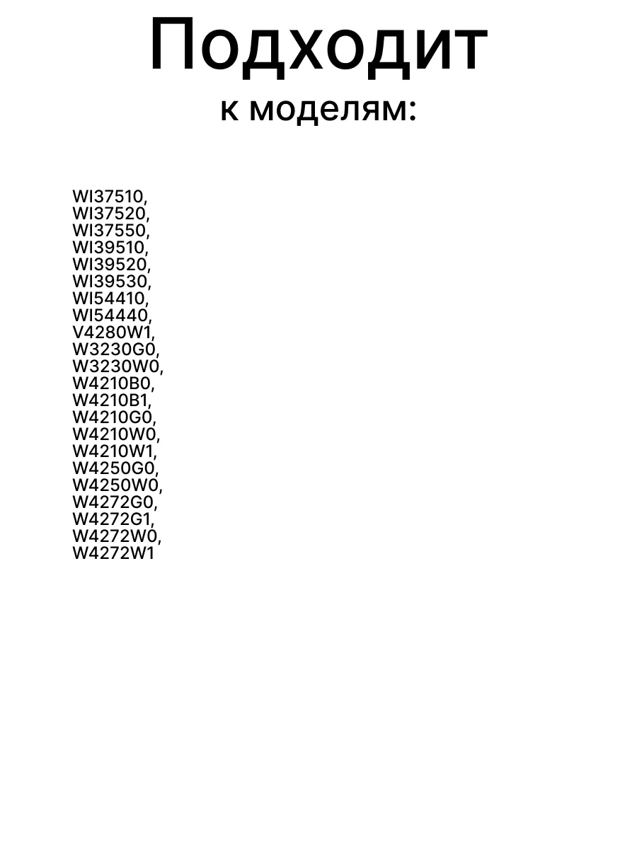 WM30030, WM30050, WM32030, WM32430, WM34030, WM34430, WM35030, WM35720,WM35730, WM3600, WM36000, WM36001, WM36010, WM36020, WM36410, WM3700,WM37000, WM37001, WM37010, WM37300, WM37301, WM37310, WM37600, WM37630,WM37730, WM3800, WM38000, WM38001, WM38010, WM38310, WM38500, WM38501,WM38510, WM38600, WM38630, WM38730, WM39010WH32830, WH35830, WH37800, WH37830, WH38800, WH38900, WH39900, WH39930,WI31410, WI31420, WI32430, WI32440, WI37500, WI37510, WI37520, WI37550,WI39510, WI39520, WI39530, WI54410, WI54440, V4280W1,W3230G0, W3230W0, W4210B0, W4210B1, W4210G0, W4210W0, W4210W1, W4250G0,W4250W0, W4272G0, W4272G1, W4272W0, W4272W1