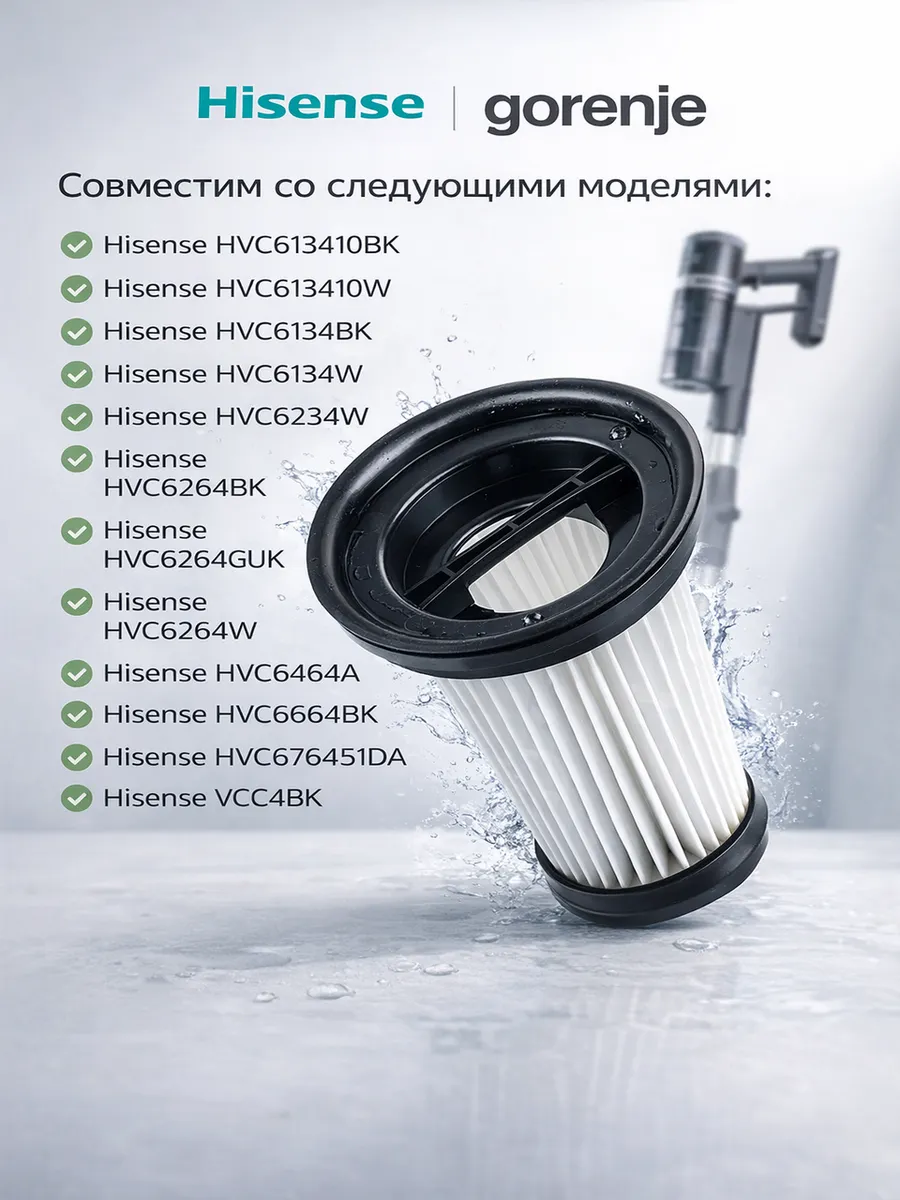 Hepa фильтр для пылесоса, фильтр Hisense, фильтр Gorenje, фильтр Vitek, фильтр для вертикального пылесоса, фильтр для аккумуляторного пылесоса, моющийся фильтр пылесоса, Hepa фильтр запасной, фильтр пылесоса Hisense HVC, фильтр тонкой очистки, фильтр от пыли и аллергенов, аксессуары для пылесоса