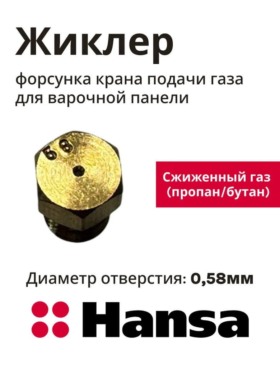 Жиклер форсунка крана подачи газа для варочной панели 8046854 Hansa.