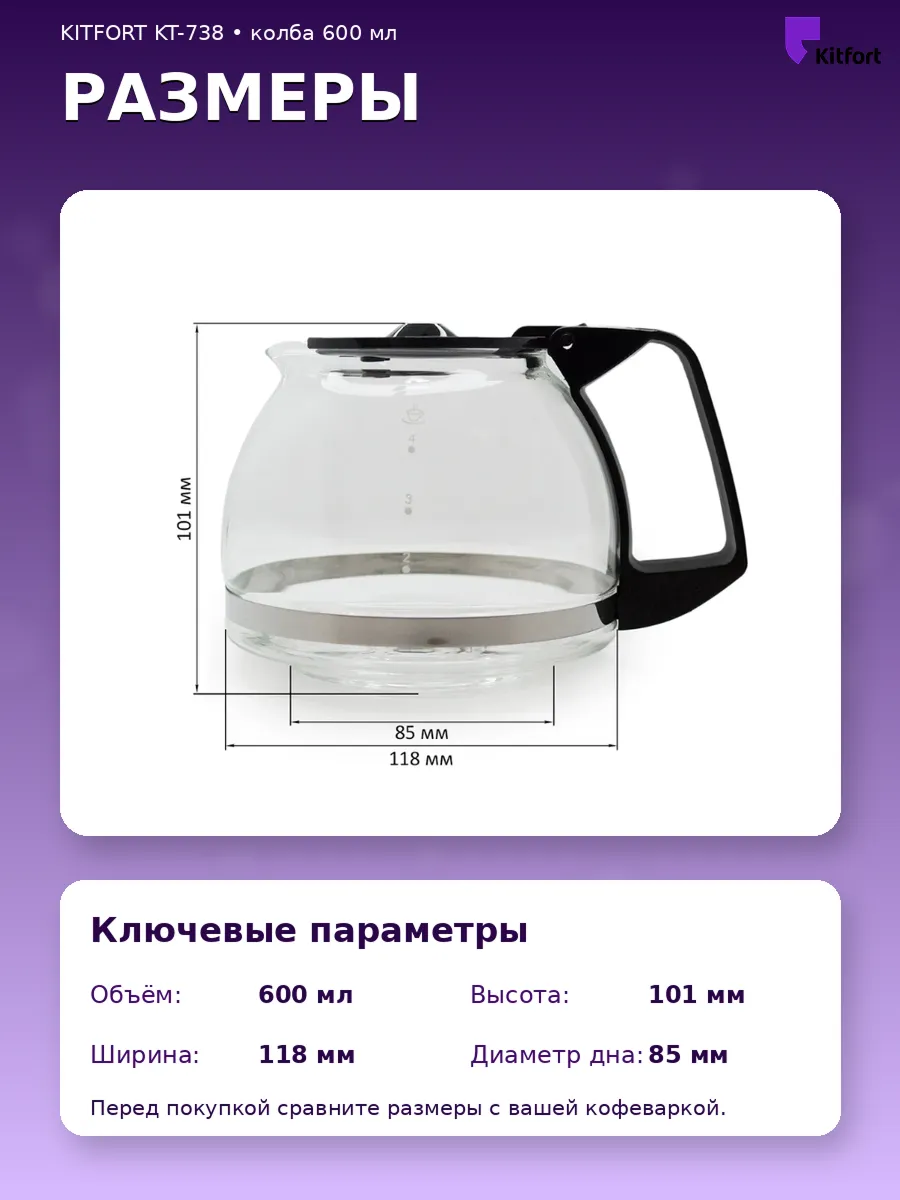 Колба для кофеварки капельной Kitfort 100 мм.