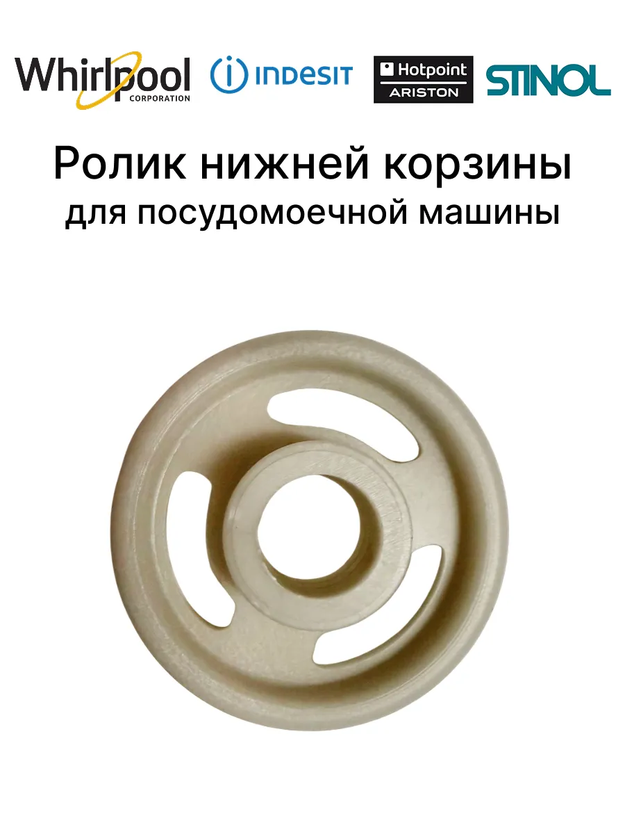 Ролик для нижней корзины посудомоечных машин указанных брендов. Обеспечивают легкое и плавное выдвижение/задвижение корзины, восстанавливая комфорт использования.
