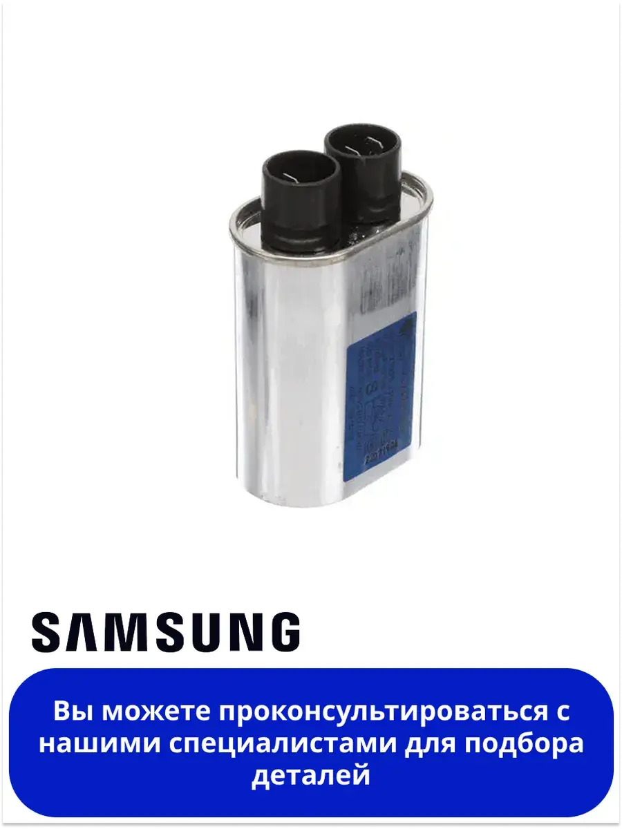 Оригинальный высоковольтный конденсатор для микроволновых печей Samsung. Обеспечивает стабильную работу магнетрона.