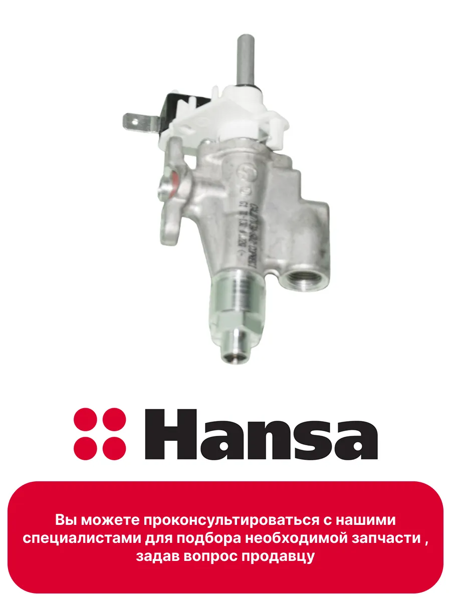 Газовый кран для плиты Hansa. Оригинальная запчасть для регулировки подачи газа к конфорке или духовке. Подходит к моделям: FCGX522222H FCGX53028