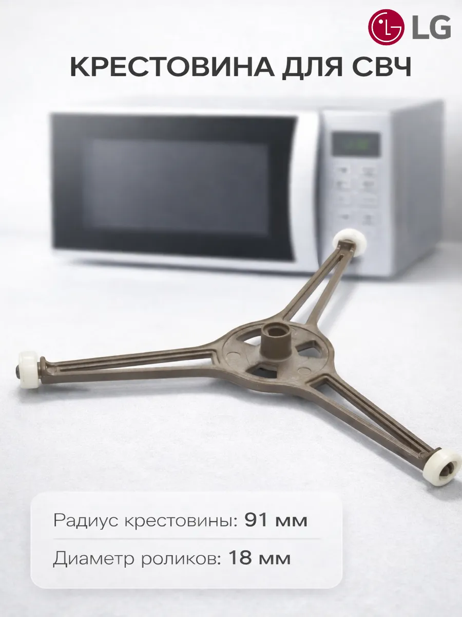 Крестовина для СВЧ LG (коплер/соединитель тарелки) — запасная деталь, которая передаёт вращение от моторчика на стеклянный поддон. Если тарелка в микроволновке перестала крутиться, вращается рывками или поддон “проскальзывает”, часто причина именно в износе крестовины.