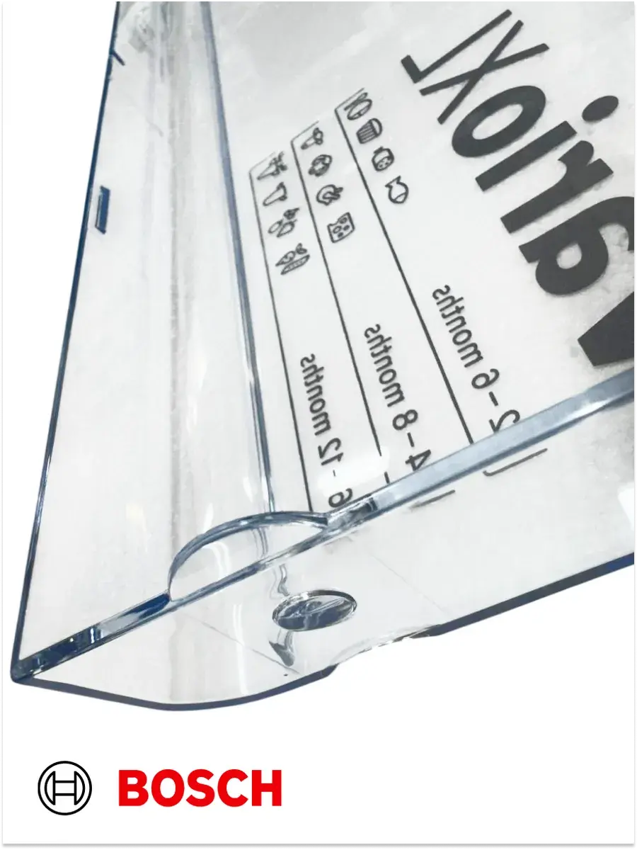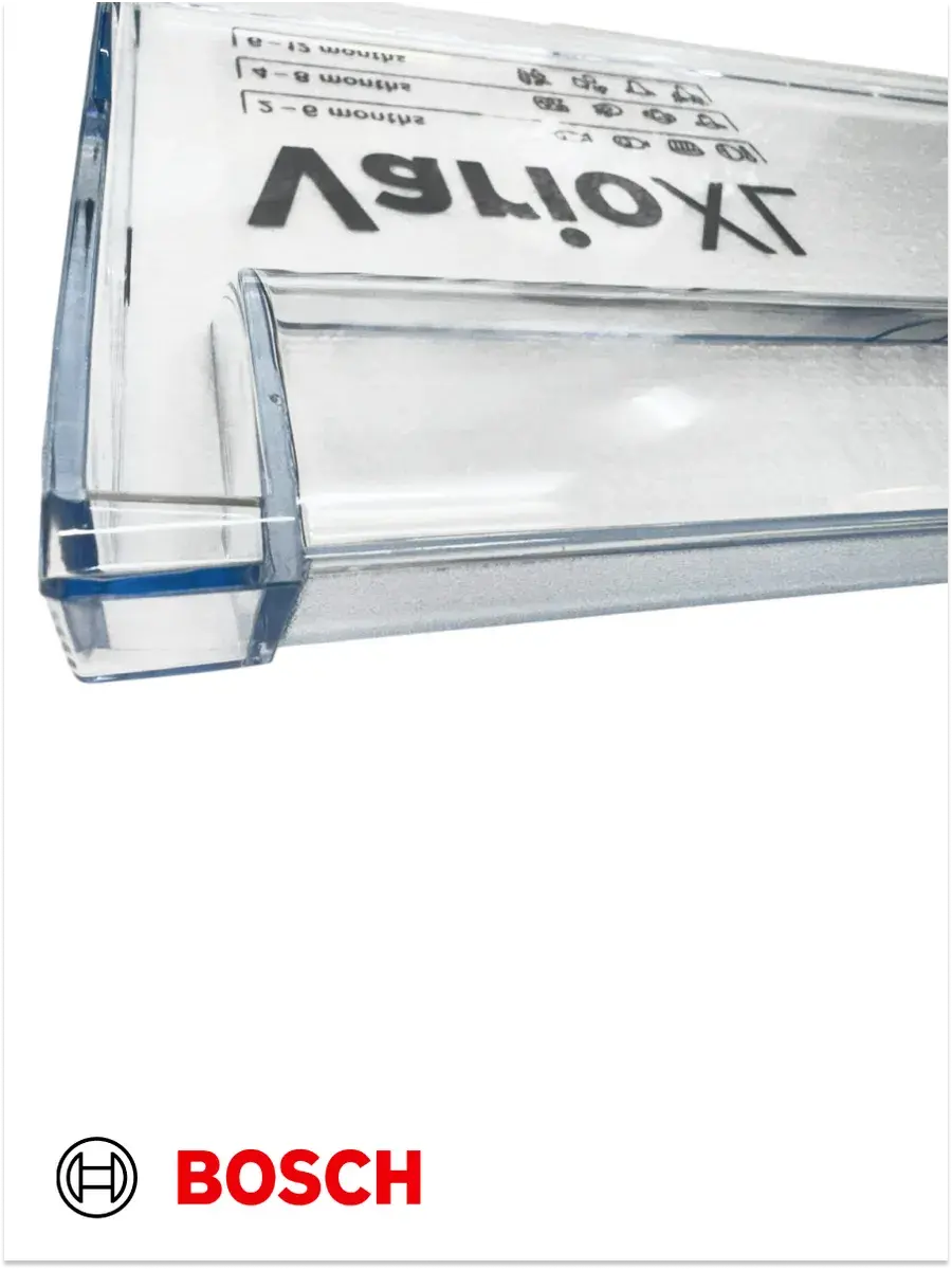 Оригинальная передняя панель ящика морозильной камеры для холодильников Bosch. Обеспечивает эстетичный вид и удобный доступ к продуктам в морозильной камере.