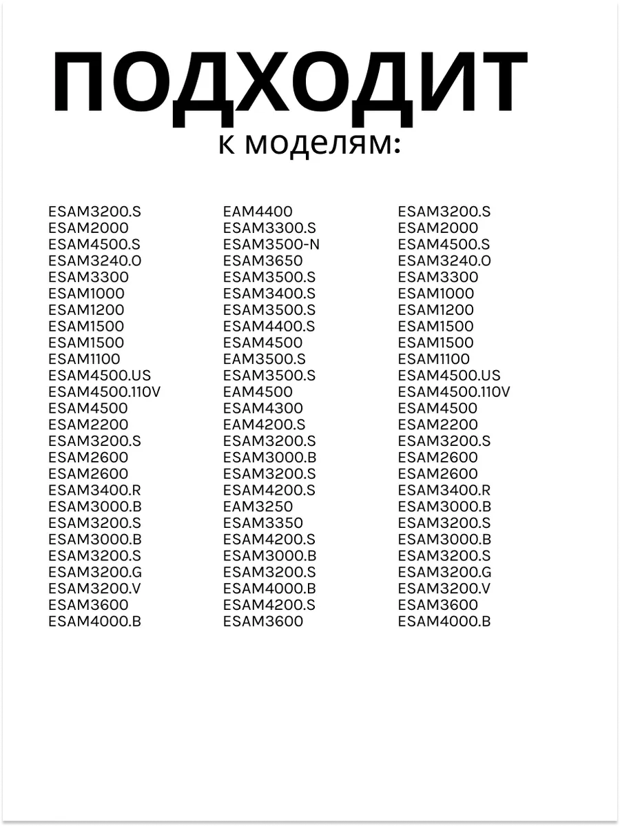 Совместимость: подходит для моделей DeLonghi серий EAM, ESAM и ECA, включая, но не ограничиваясь: