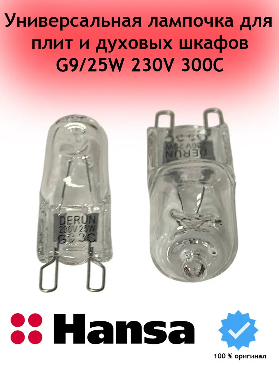 лампа духовки Hansa 1214404, лампочка G9 25W Hansa, лампа подсветки духовки, лампочка для плиты Hansa, лампочка 300 градусов, лампа для духового шкафа.