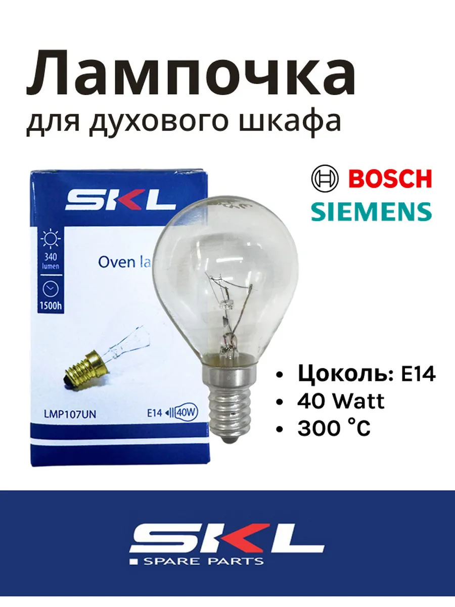 Осветите вашу выпечку! Термостойкая лампа 40Вт с цоколем Е14 выдерживает до 300°С. Яркий свет для идеального обзора в любой духовке.