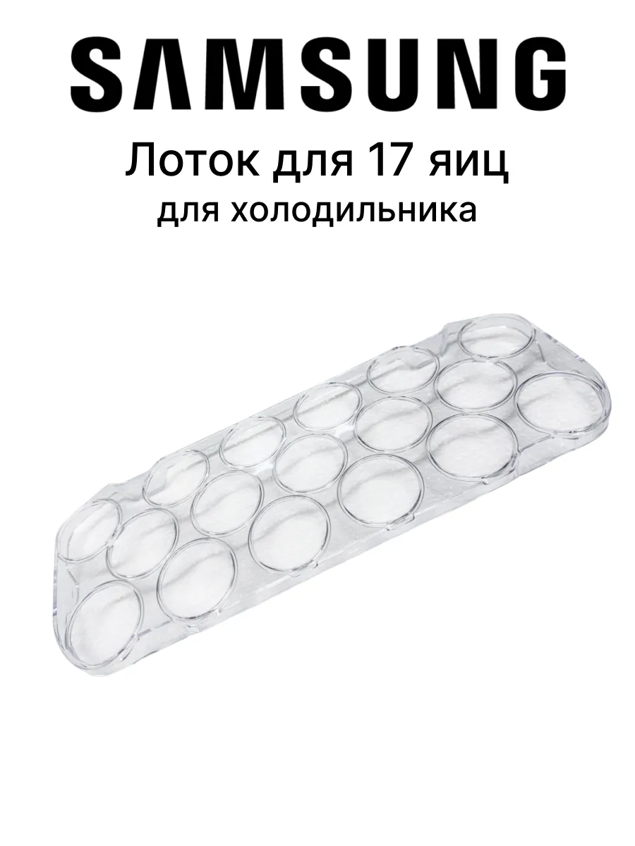 Лоток для яиц на 17 шт. для холодильника Samsung. Изготовлен из прочного пищевого пластика, обеспечивает аккуратное и безопасное хранение яиц, защищая их от сколов и проливов. Прозрачный дизайн позволяет быстро видеть содержимое.