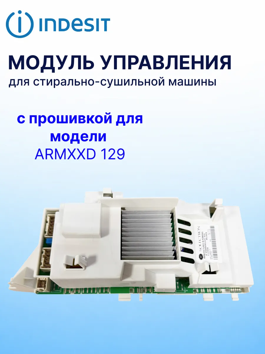 Модуль управления с прошивкой предназначен для восстановления и корректной работы стирально-сушильных машин Indesit. Плата содержит оригинальное или совместимое программное обеспечение, обеспечивающее управление всеми основными функциями устройства: набором воды, вращением барабана, нагревом, сушкой, отжимом и системой безопасности.