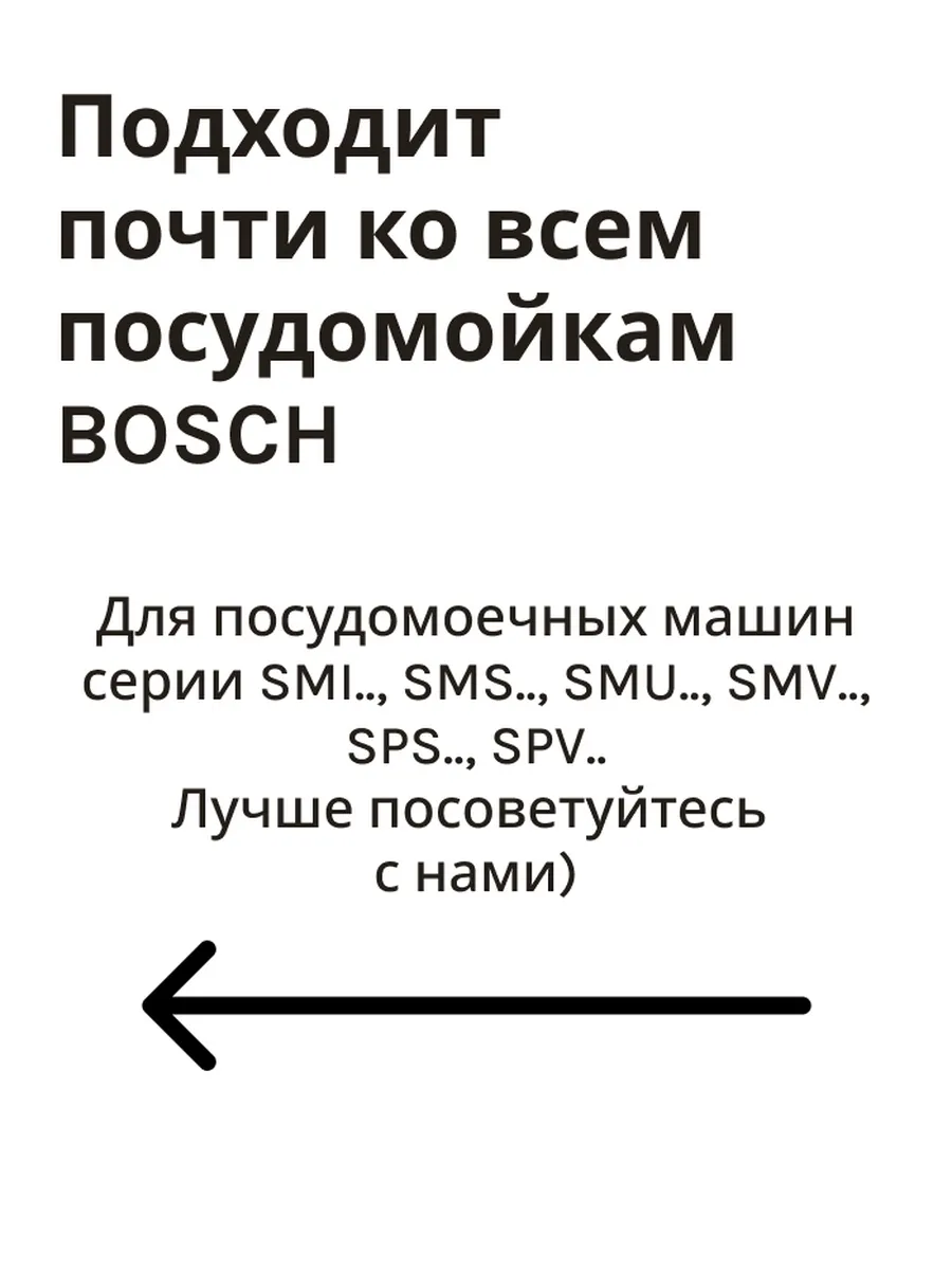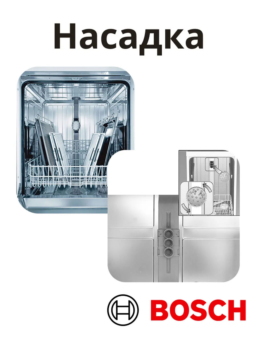 Разбрызгивающая головка для мытья противней для посудомоечной машины (для посудомойки).Вода, выходящая из насадки под давлением, эффективно смывает загрязнения и осевший жир.Для использования насадки снимите верхнюю корзину для посуды и установите разбрызгиватель на отверстие подачи воды на задней стенке моечной камеры.После этого противни, жировые фильтры для вытяжек и другие крупные кухонные предметы легко моются.Данная насадка для мытья противней подходит для новых моделей посудомоечных машин с контейнером для моющих средств в центре двери или с ассистентом дозировки.При использовании данной насадки противни, фильтры и другие крупные предметы устанавливаются в нижнюю корзину для посуды.Подходит для посудомоечных машин серии SMI.., SMS.., SMU , SMV , SPS , SPV . Перед заказом, пожалуйста, проверяйте совместимость с вашим прибором. Список совместимых моделей, 1KDW64006, 1KDW64006, 1KDW64007, 1KDW64017I, 1KDW64017U, 1KDW64018I, 1KDW64018U, 3VS880IA, 3VS884IA, 3VS885IA, CG3A00S2, CG3A00U5, CG3A01J5, CG3A01S2, CG4A00V9, CG4A01J5, CG4A02J5, CG4A04J5, CG4A50V8, CG4B00J5, CG4B00V9, CG4B02J5, CG5B00J5, CG5B01J5, CG5B02V9, CG5B03J5, DF250140, DF250141, DF250160, DF250161, DF250162, DF260161F, DF260162, DF261163, DF261163F, DF261164, DF261164F, DF261165, DF460162, DF460162F, DF480761, DF480761F, DF480763, DF480763F, DF480800, DF480801, DI260411, DI260800, DI261110, DI461111, DI461112, DI461113, DI461131, DWHD650JFM, DWHD650JFP, DWHD870WFP, DWHD870WPR, JS03IN51, JS03IN52, JS03IN53, JS04IN51, JS04IN54, JS04IN55, JS04VN90C, JS05IX50, JS05VN90, S153HAX02G, S153HCX02G, S153HMX10R, S153ITX02G, S153ITX05G, список не полный. Подходит почти ко всем посудомойкам BOSCH.