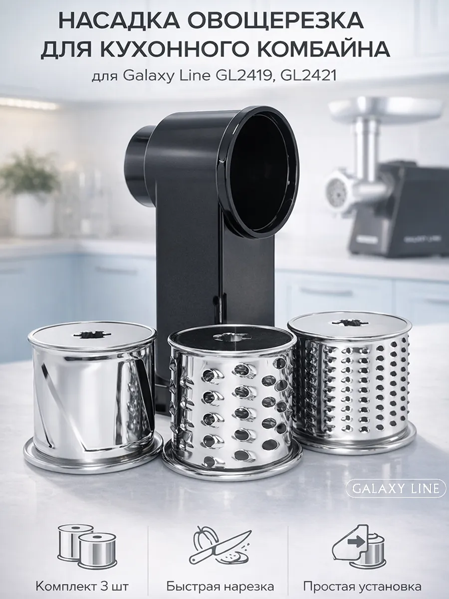 Комплект насадок-овощерезок представляет собой универсальный набор сменных барабанчиков-насадок для мясорубки Galaxy Line GL2419, GL2421. Он позволяет быстро и удобно нарезать и измельчать овощи, фрукты и другие продукты, превращая подготовку ингредиентов в лёгкую и эффективную задачу.