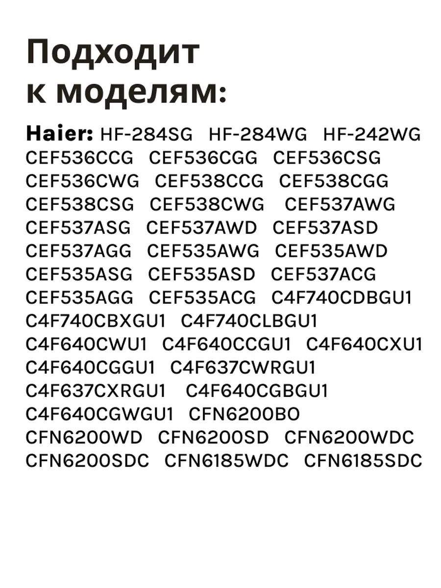 Подходит к моделям: Haier: HF-284SG HF-284WG HF-242WG CEF536CCG CEF536CGG CEF536CSG CEF536CWG CEF538CCG CEF538CGG CEF538CSG CEF538CWG CEF537AWG CEF537ASG CEF537AWD CEF537ASD CEF537AGG CEF535AWG CEF535AWD CEF535ASG CEF535ASD CEF537ACG CEF535AGG CEF535ACG C4F740CDBGU1 C4F740CBXGU1 C4F740CLBGU1 C4F640CWU1 C4F640CCGU1 C4F640CXU1 C4F640CGGU1 C4F637CWRGU1 C4F637CXRGU1 C4F640CGBGU1 C4F640CGWGU1 CFN6200BO CFN6200WD CFN6200SD CFN6200WDC CFN6200SDC CFN6185WDC CFN6185SDC