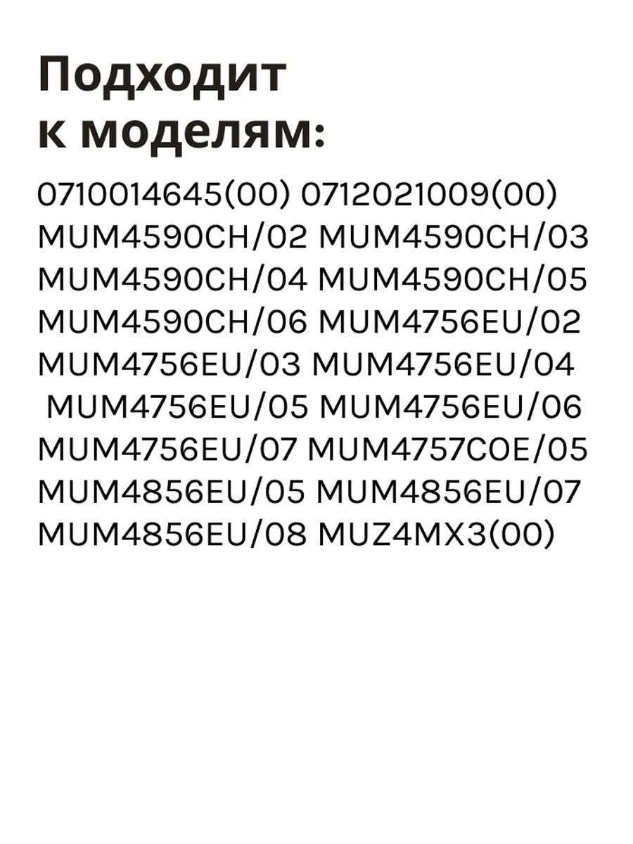 Подходит к моделям: 0710014645(00) 0712021009(00) MUM4590CH/02 MUM4590CH/03 MUM4590CH/04 MUM4590CH/05 MUM4590CH/06 MUM4756EU/02 MUM4756EU/03 MUM4756EU/04 MUM4756EU/05 MUM4756EU/06 MUM4756EU/07 MUM4757COE/05 MUM4856EU/05 MUM4856EU/07 MUM4856EU/08 MUZ4MX3(00).