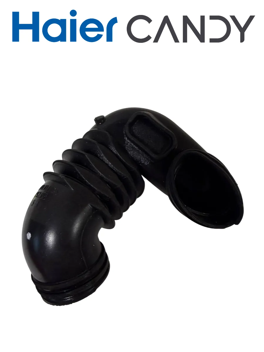 Заливной патрубок (в дозатор) для стиральной машины Candy, Haier — гибкий шланг, подающий воду из впускного клапана в отсек для моющих средств. Обеспечивает правильное смывание порошка/геля и ополаскивателя, предотвращая протечки.