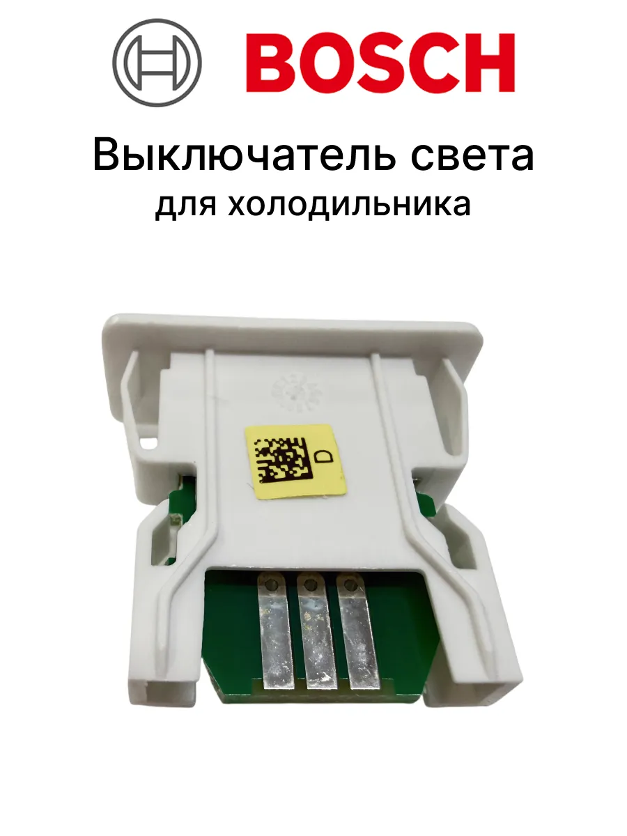 Оригинальный (или совместимый) выключатель подсветки для холодильников Bosch. Отвечает за включение и выключение внутреннего освещения при открытии и закрытии дверцы.