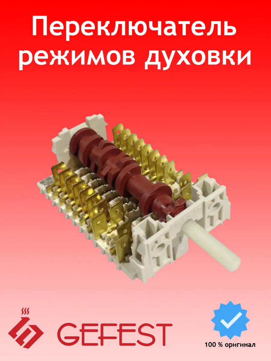 Оригинальный переключатель (селектор режимов) Dreefs 11HE/285 восстанавливает корректную работу управления духовым шкафом — обеспечивает точное и надёжное переключение режимов нагрева (гриль, верх/низ, конвекция и т.д.). Подходит к широкому пулу моделей Gefest (перечень ниже). Идеален при залипании контактов, проскальзывании ручки или отсутствии отклика при смене режима.
