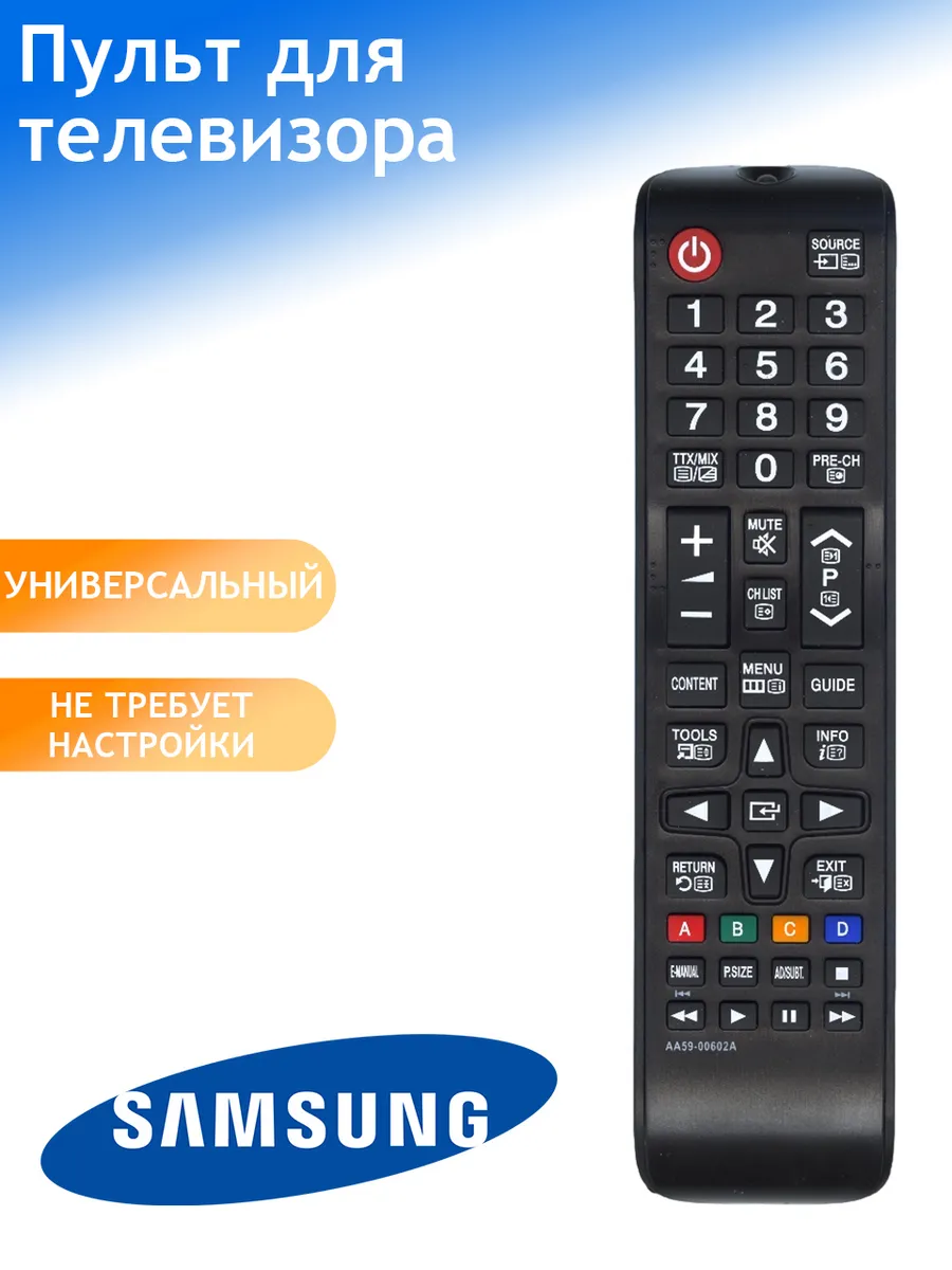 Оригинальный пульт для телевизора Samsung AA59-00602A — универсальный пульт дистанционного управления, подходящий для большинства телевизоров Samsung. Быстрая и простая замена штатного пульта: управление каналами, громкостью, навигация по меню и доступ к Smart-функциям