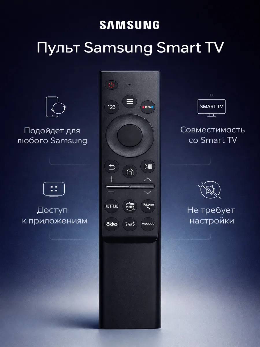 Пульт для Smart телевизоров Samsung / Самсунг. Быстрая и простая замена штатного пульта: управление каналами, громкостью, навигация по меню и доступ к Smart-функциям