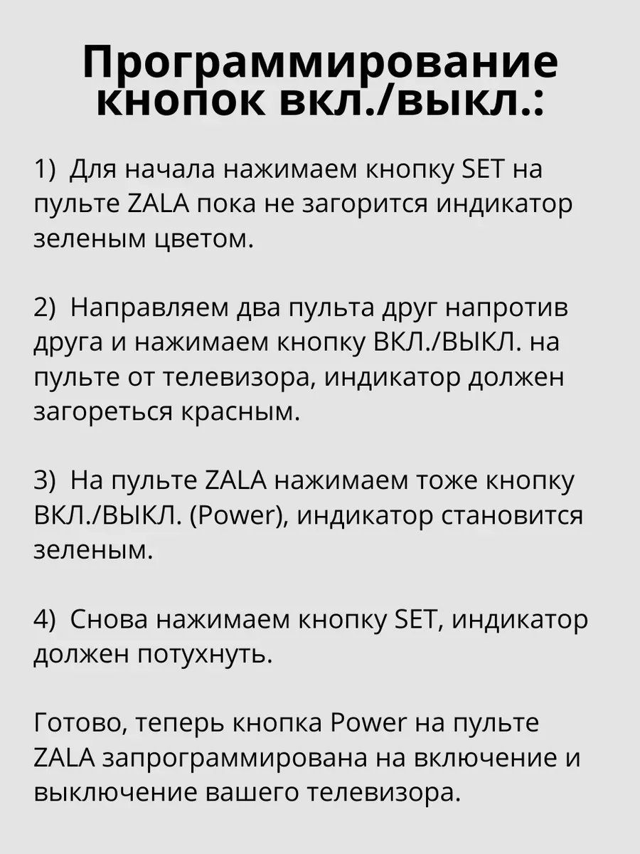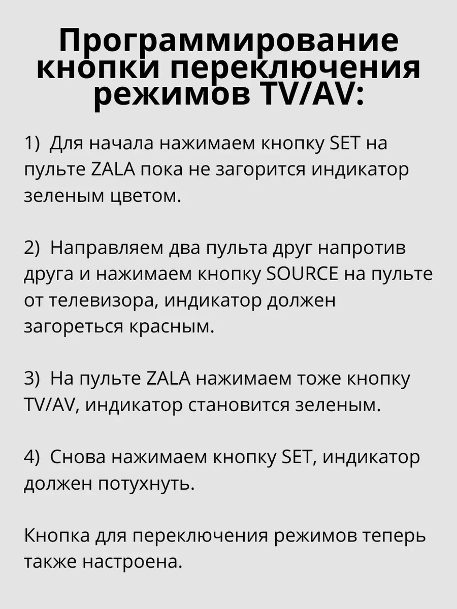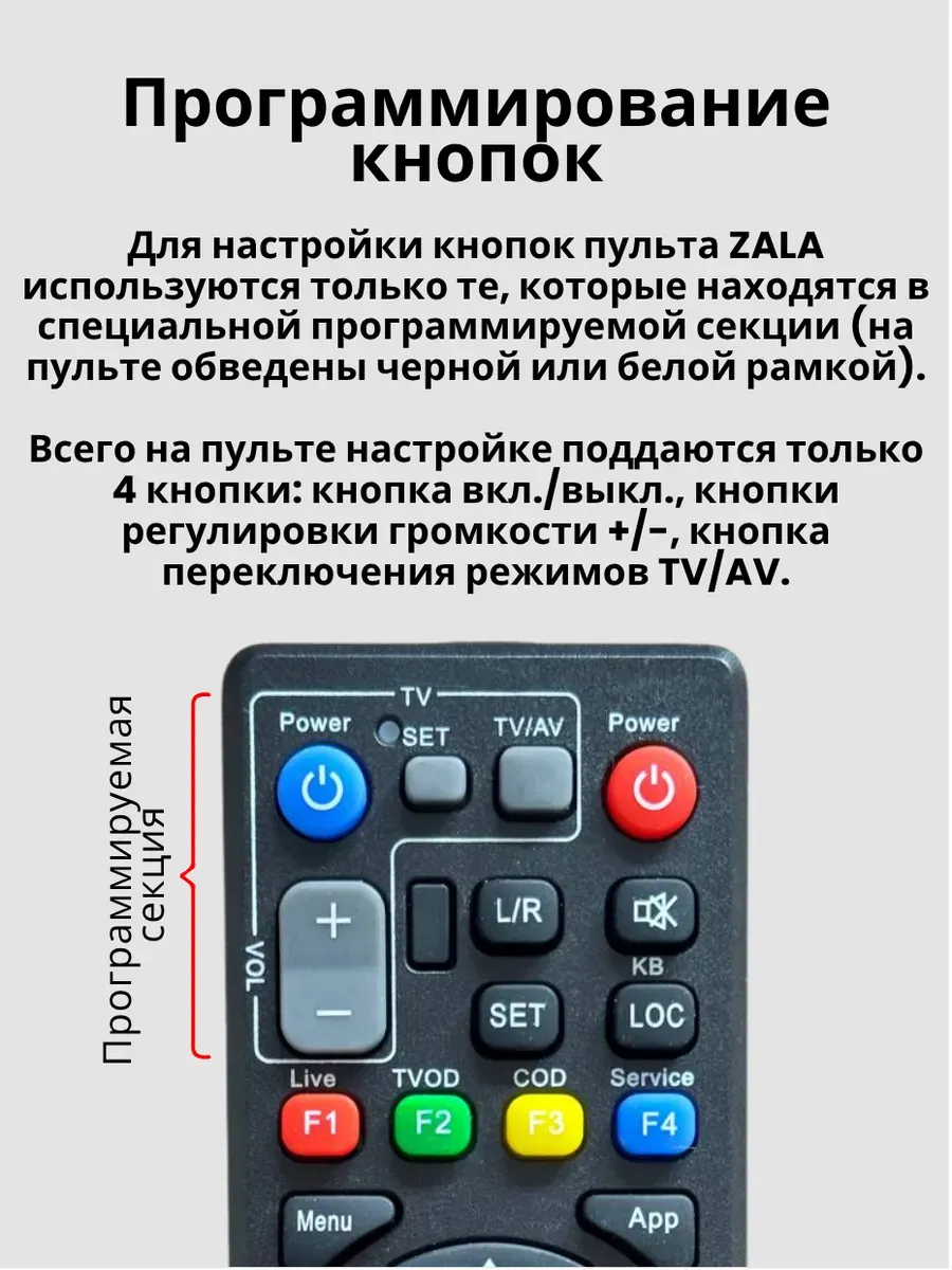 Для обучения ПДУ ZALA (СМОТРИТЕ ИНСТРУКЦИЮ НА ФОТО) используйте только те, кнопки которые находятся в блоке и обведены линией.