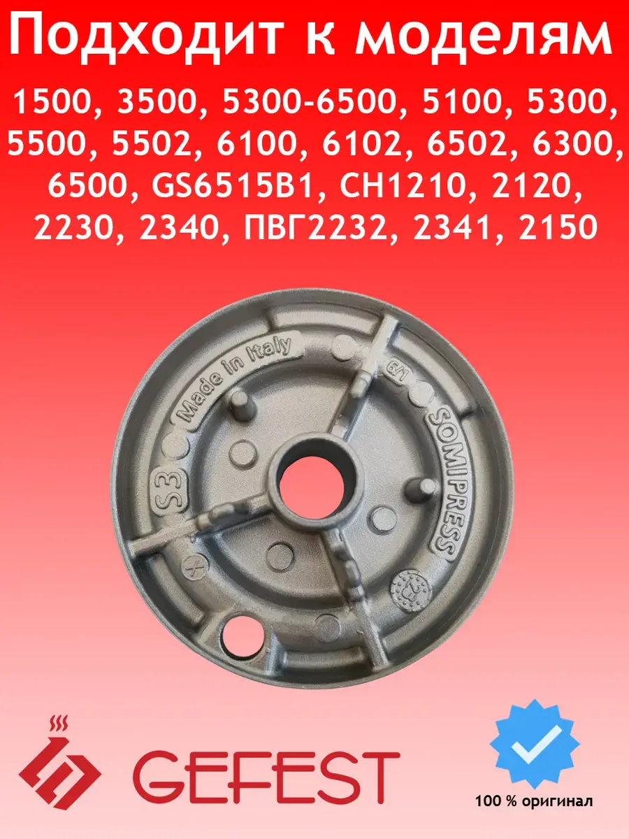 подходит для плит GEFEST: 1500, 3500, 5300-6500, 5100, 5300, 5500, 5502, 6100, 6102, 6502, 6300, 6500, GS6515B1, СН1210, 2120, 2230, 2340, ПВГ2232, 2341, 2150