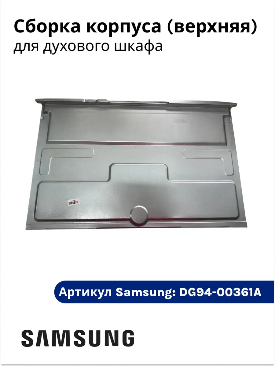 Сборка корпуса верхняя для духового шкафа Samsung. Предназначена для защиты внутренних компонентов духового шкафа и обеспечения его герметичности. Изготовлена из прочных и термостойких материалов. Легко устанавливается.