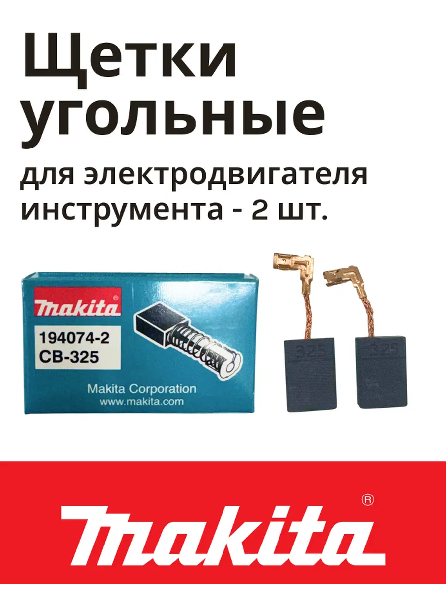 Щетки угольные для мотора шлифмашины и перфоратора CB-325 (2 штуки в 1 коробке) 194074-2 Makita.