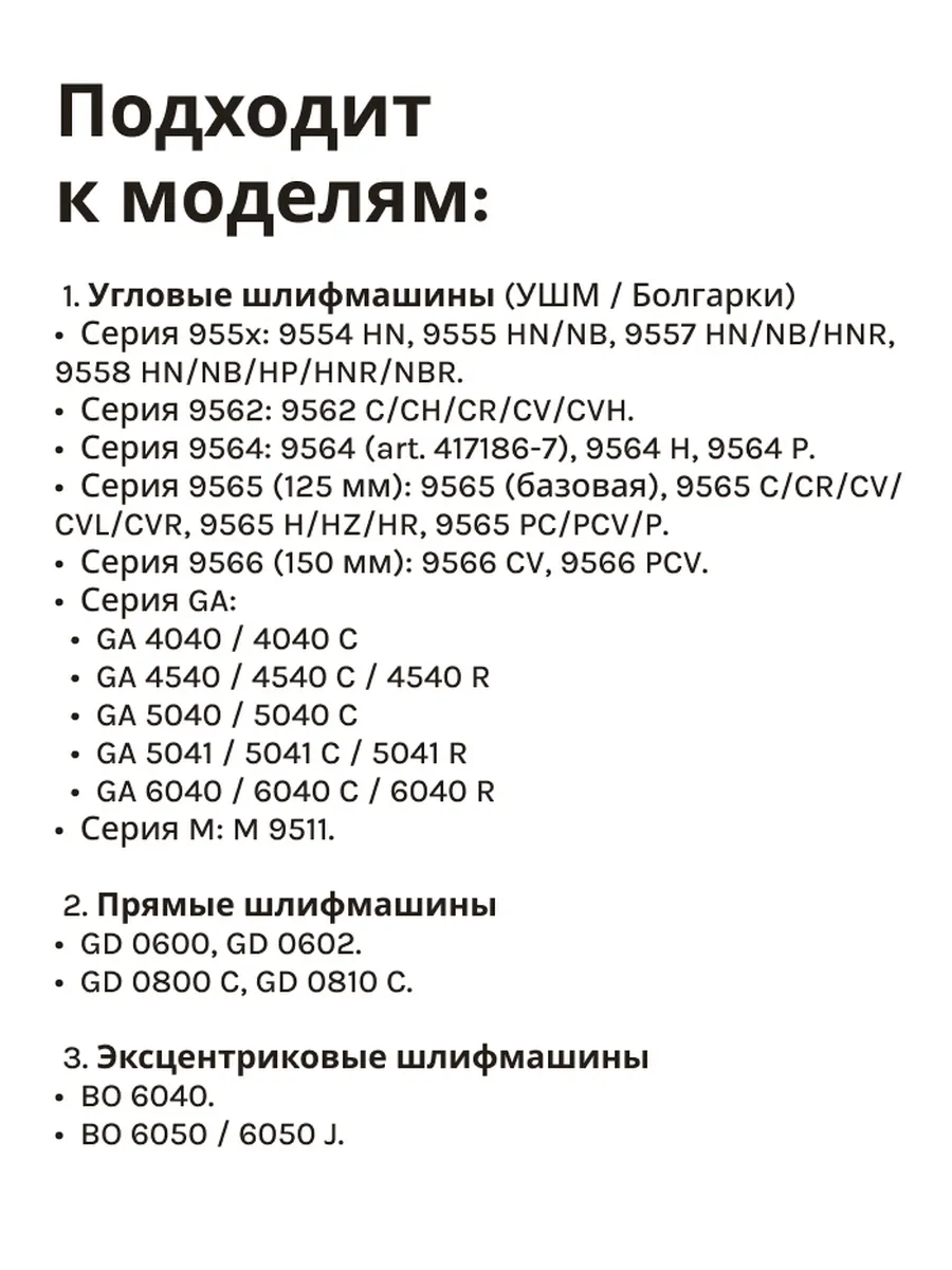 • Серия 9565 (125 мм): 9565 (базовая), 9565 C/CR/CV/CVL/CVR, 9565 H/HZ/HR, 9565 PC/PCV/P.