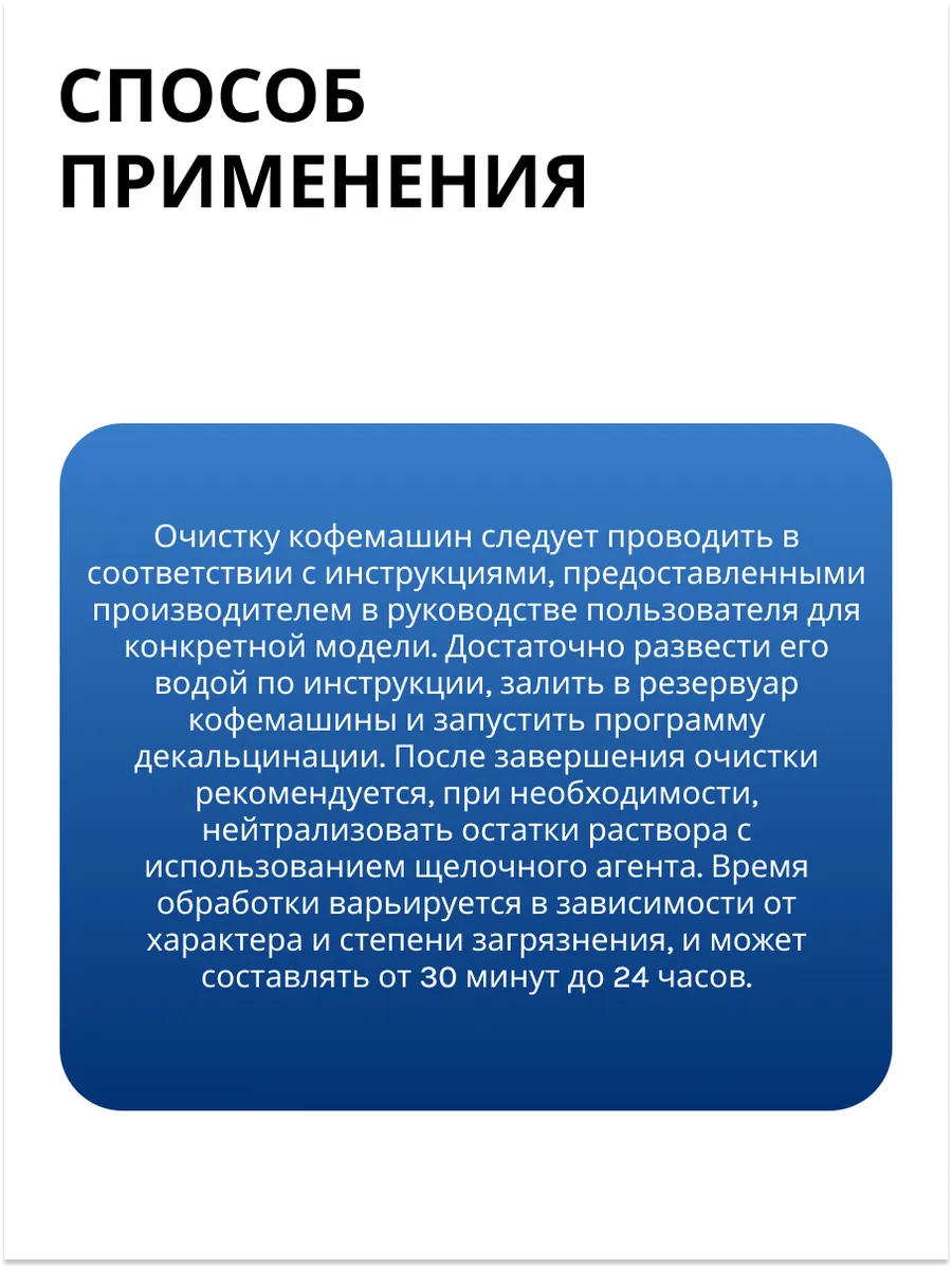 Эффективное удаление накипи: Быстро и эффективно растворяет накипь, восстанавливая оптимальную производительность вашей кофемашины.