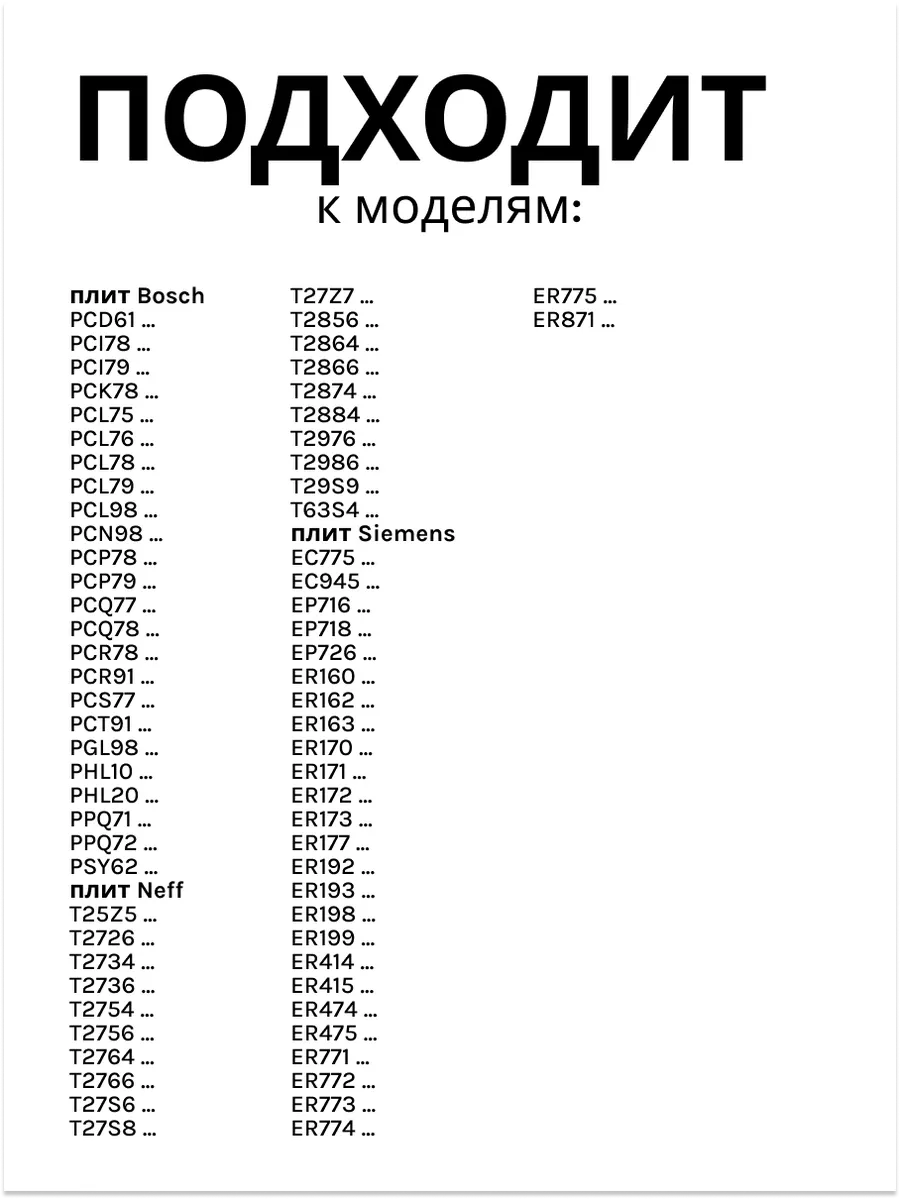 плит BoschPCD61 ...PCI78 ...PCI79 ...PCK78 ...PCL75 ...PCL76 ...PCL78 ...PCL79 ...PCL98 ...PCN98 ...PCP78 ...PCP79 ...PCQ77 ...PCQ78 ...PCR78 ...PCR91 ...PCS77 ...PCT91 ...PGL98 ...PHL10 ...PHL20 ...PPQ71 ...PPQ72 ...PSY62 ...