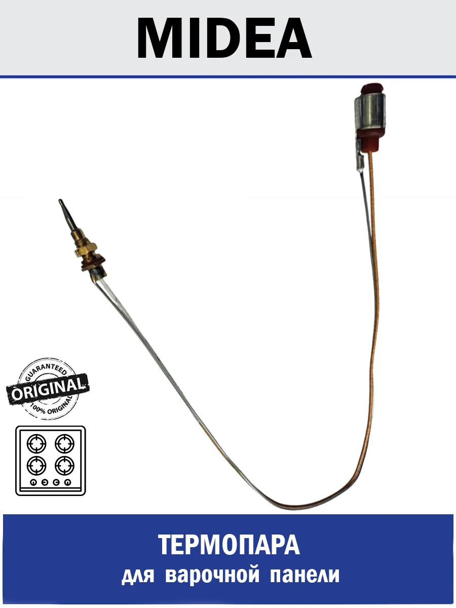 Оригинальный термопара для газовой варочной панели (плиты) MIDEA (COMFEE, TOSHIBA). Совместим с моделями: Q301SFD ... Перед заказом, пожалуйста, проверяйте совместимость с Вашим прибором.