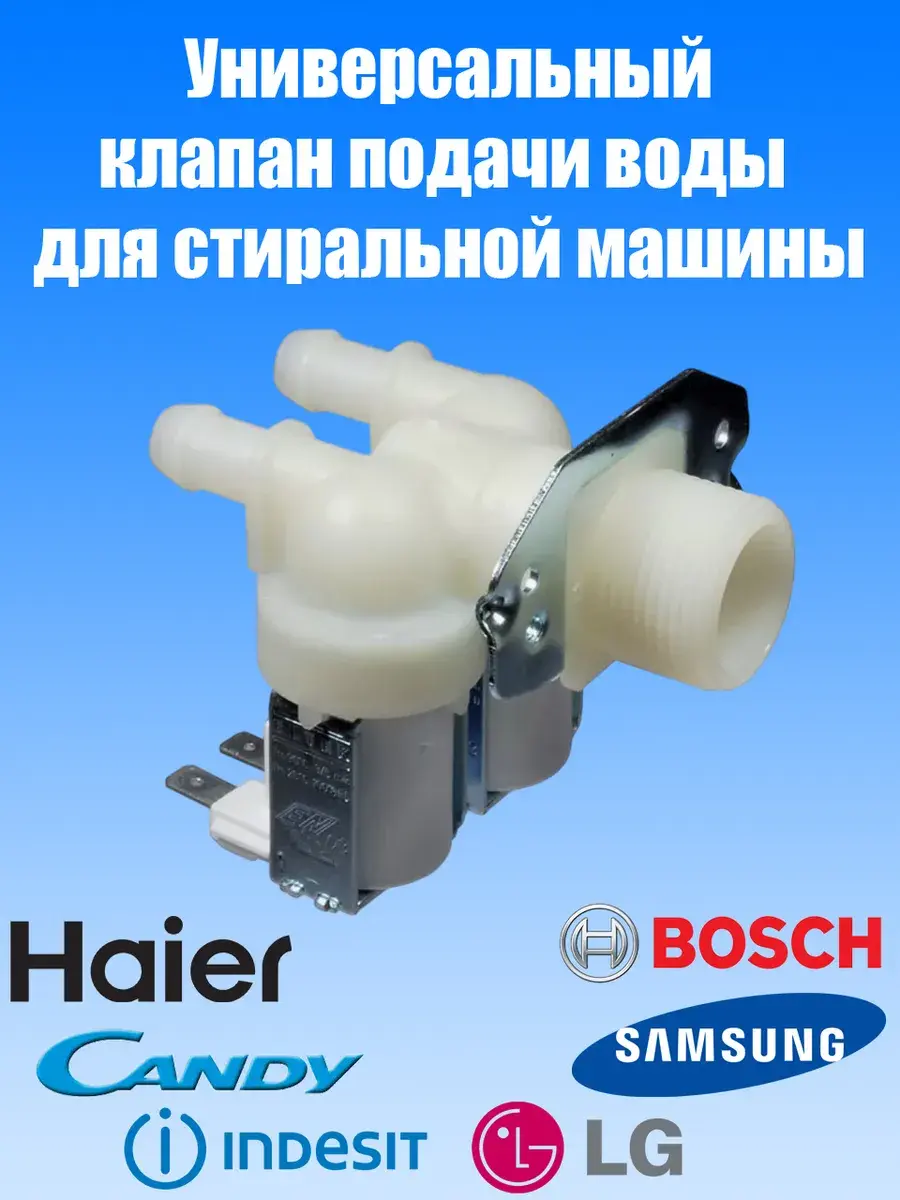 электроклапан стиральной машины, заливной клапан, впускной клапан воды, двойной клапан, электромагнитный клапан 2W‑180, универсальный клапан 12мм, разъём 6,3мм, Whirlpool, Candy, Gorenje, клапан на стиральную машину LG, клапан на стиральную машину Samsung, Atlant, Haier, клапан для Electrolux, Zanussi, AEG, клапан для Beko, Daewoo, 49031828U, C00378124, VAL020UN, VAL120UN, 00208048, 16AV02, 62AB312, 16EV18, DC62‑00024F, 5221EN1005B, 0300004, AV5202, DC62‑00024M, 5220FR1251E, AJU71115201, 4925EN1003C, 5220FR1251F, DC62‑00024Y, DC62‑00266B, G608557, G419688, G196237, G196238, VAL220UN
